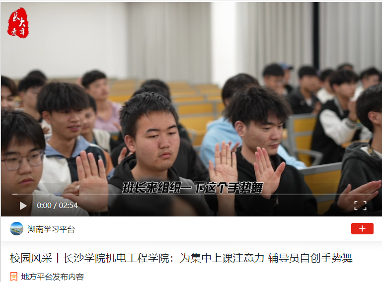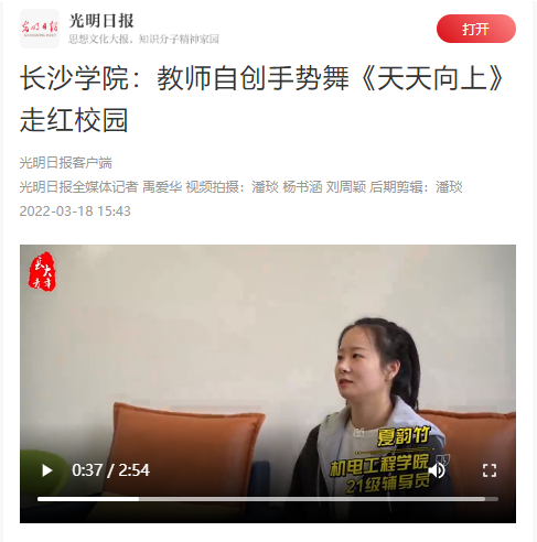 2022近日,长沙学院机电工程学院2021级学生辅导员夏韵竹老师自创一套手势舞《天天向上》在校园走红,受...