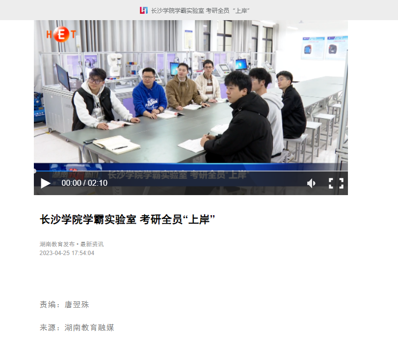 2023湖南教育电视台报道我院学院智能检测与控制研学实验室8名学生全部考研“上岸”链接:https://m-xh...