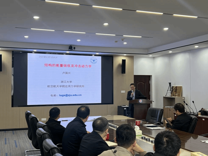 11月7日上午,国际冲击工程学会主席、浙江大学求是讲席教授卢国兴博士应邀莅临我校,在长智楼C301会议室作了题为“结构和材料的能量吸收及冲击动力学”的学术讲座,讲座吸引了机电工程学院师生积极参与,会议由张高峰院长主持。