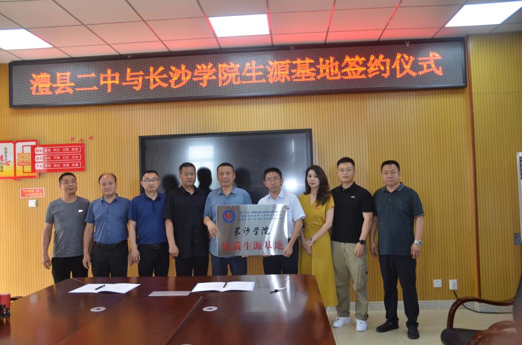 随后,双方与会领导围绕具体合作内容展开交流,并签署了优质生源基地合作协议,张海涛代表学校为澧县二中授予“长沙学院优质生源地”牌匾。