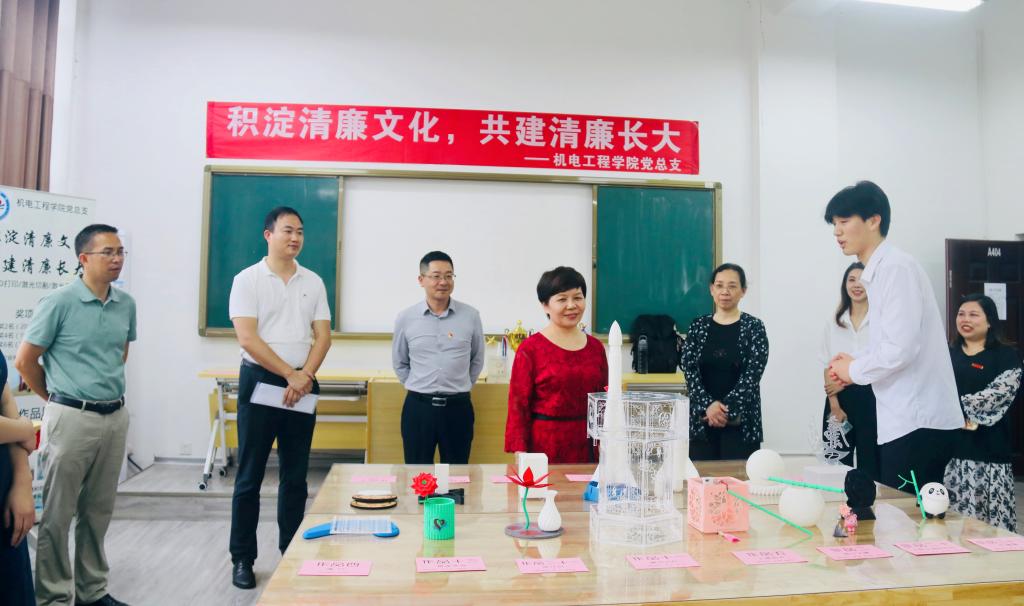 《廉尺》《荷竹之廉》《廉洁之灯》《清廉号》……5月6日,一个个主旨鲜明、富有创意的工艺作品正在长沙学院金工实习工厂A404展出,吸引了校党委委员、纪委书记丁文、校纪委副书记贺革、校党委宣传部常务副部长徐远超、校学工处处长张镇等领导和广大师生驻足观看。