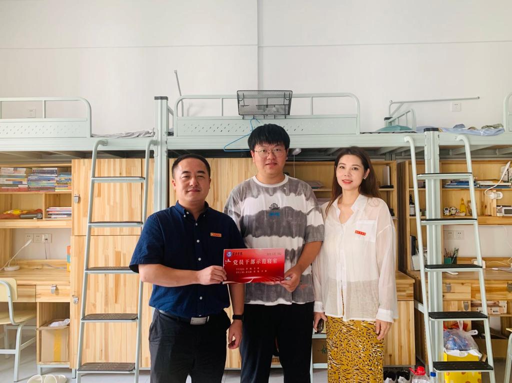 院党总支书记张昊、副书记唐珍妮给学生党员、干部、军训教官、退伍军人宿舍挂牌