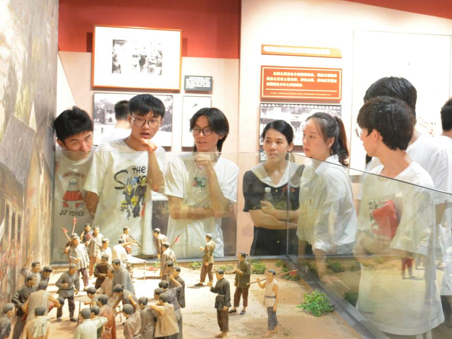 从正门左边进入党史馆,一幅浓墨重彩历史的画卷便悄然展现在众人眼前。同学们分组自行参观,认真阅读展示主题内容,仔细观看展览物品以及拍照留念。