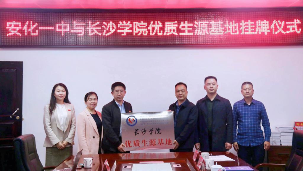 随后,双方与会领导签署了优质生源基地合作协议,张海涛代表学校为安化一中授予“长沙学院优质生源地”牌匾。接下来,学校将进一步整合资源,积极推进优秀生源基地建设,不断优化生源质量,夯实人才培养基础。
