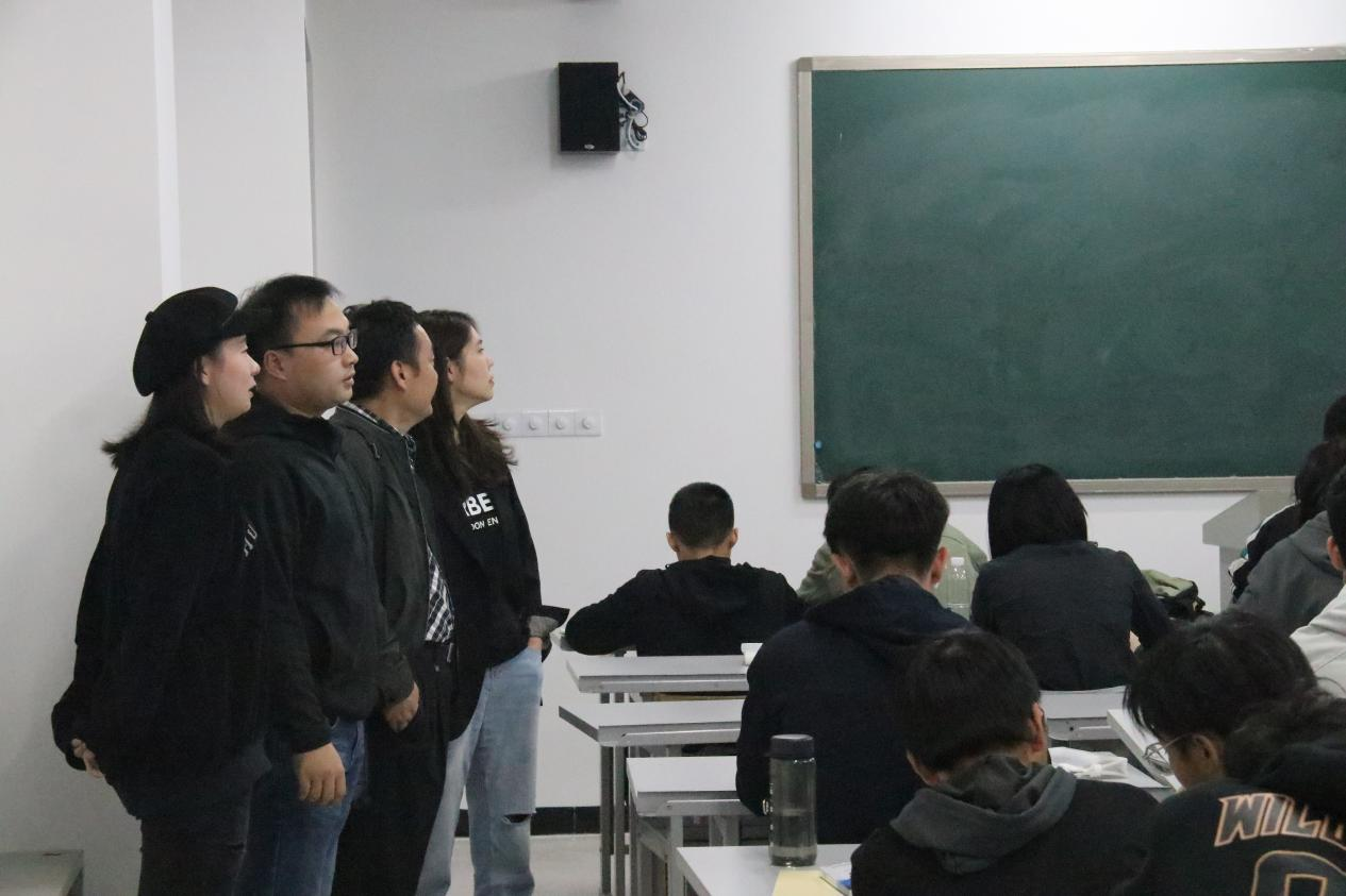 机电学院党总支副书记唐珍妮(左四)组织新生辅导员、班主任老师进课堂开展班会