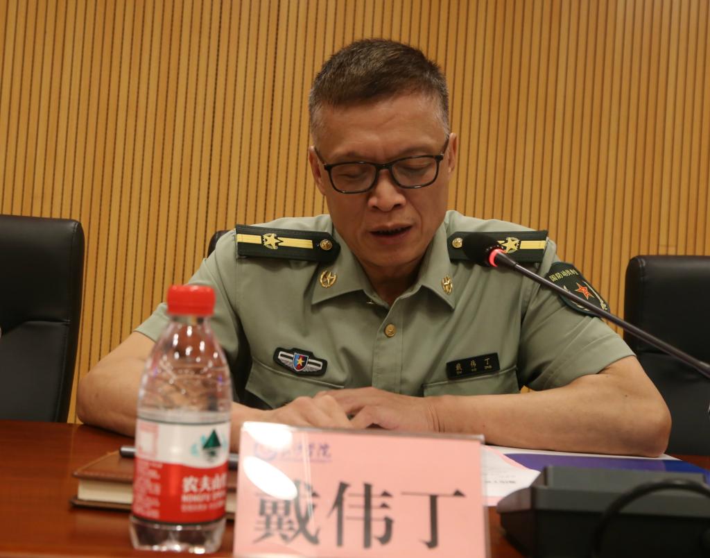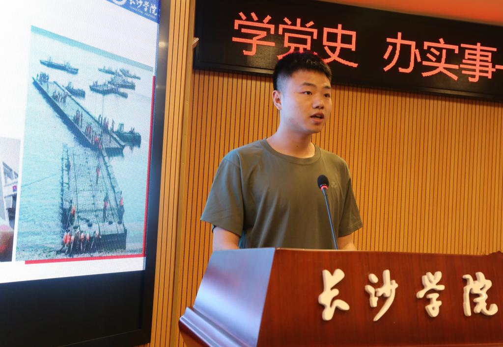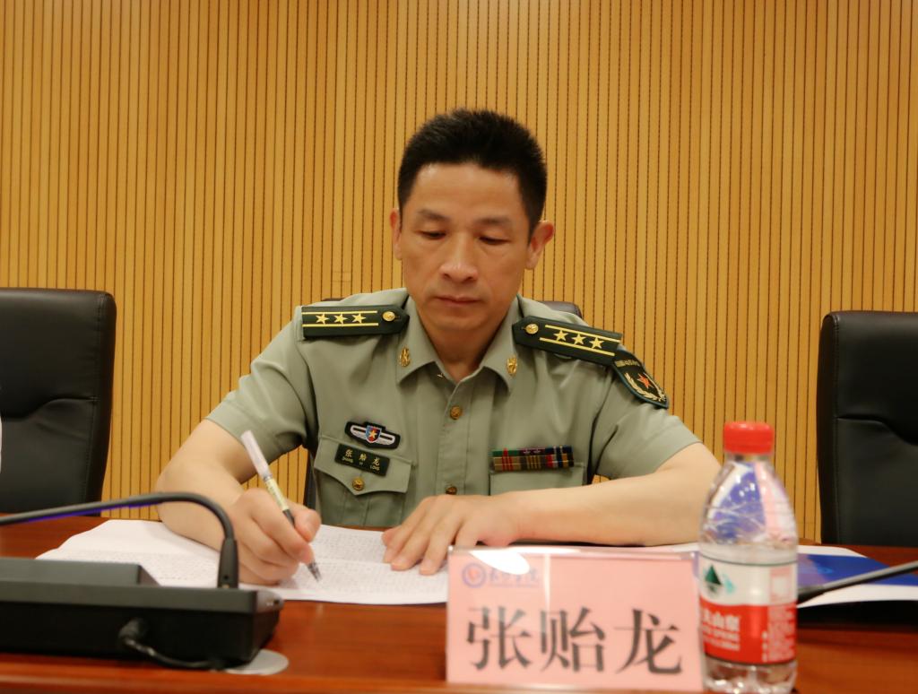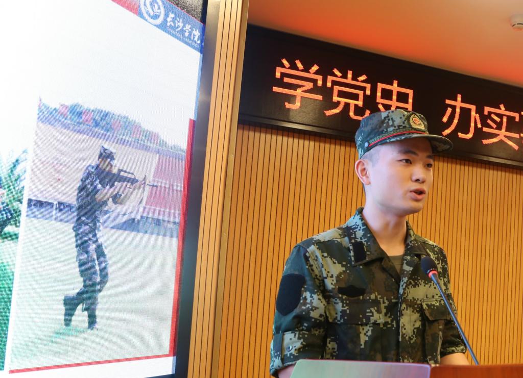 随后,作为本次活动的特邀嘉宾,张贻龙上校从“不忘历史,树立坚定的政治信仰”“不忘党恩,培育坚强的革命精神”“不忘初心,争做新时代的革命战士”三个方面给大家上了一节生动活泼的党史与国防安全教育课,帮助大家全面了解、正确认识党的历史,熟悉基本的国防理论和军事知识,树立居安思危的国防观念,激发大家爱军习武、献身国防的决心。