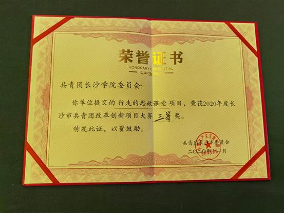 近日,长沙市共青团改革创新项目大赛(决赛)在枫林宾馆正式举行,市委副秘书长谭慧慧,团省委办公室主任王柱湘,市委改革办专职副主任曾向阳,团市委党组成员、副书记周坤,团市委兼职副书记邓意麒出席活动并担任评委,现场还有来自25个团组织的一百余名大众评审。机电工程学院“行走的思政课堂”项目在此次比赛中获得三等奖,得到了评委的肯定和鼓励。