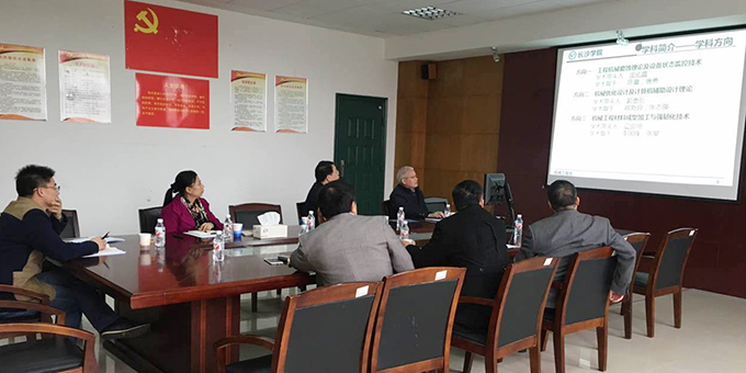3 月17日,应我校机电工程系的邀请,中南大学机电工程学院院长黄明辉教授、湖南师范大学工程与设计学院院长李仲阳教授、湖南科技大学机电工程学院胡燕平教授参加了我校机械工程专业学位硕士建设点研究方向凝练研讨会。机电工程系主任、研究方向带头人李国锋教授主持了研讨会,科技处处长、研究方向带头人庞佑霞教授、研究方向带头人刘辉教授、学术骨干张干清副教授参加了此次研讨会。