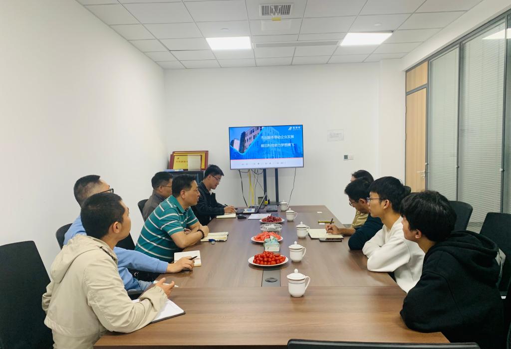 锐博特综合管理部部长任科等公司部门负责人带领参观了企业的生产环境和生产设备。随后,双方开展了座谈交流,会上任科介绍了企业的发展历程、主要产品和业务,同时对公司的人才招聘需求、管理模式、培养方式、福利待遇等进行了详细讲解。他表示,期待更多长大机电学子加入公司,更期待与学院在人才培养、科学研究、学生实践与就业创业等领域更加深入交流与合作。张海涛表示,希望通过此次调研,充分发挥双方资源优势,开展更加深入的合作,实现互利共赢。