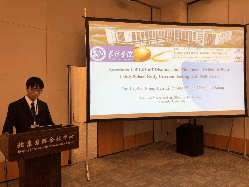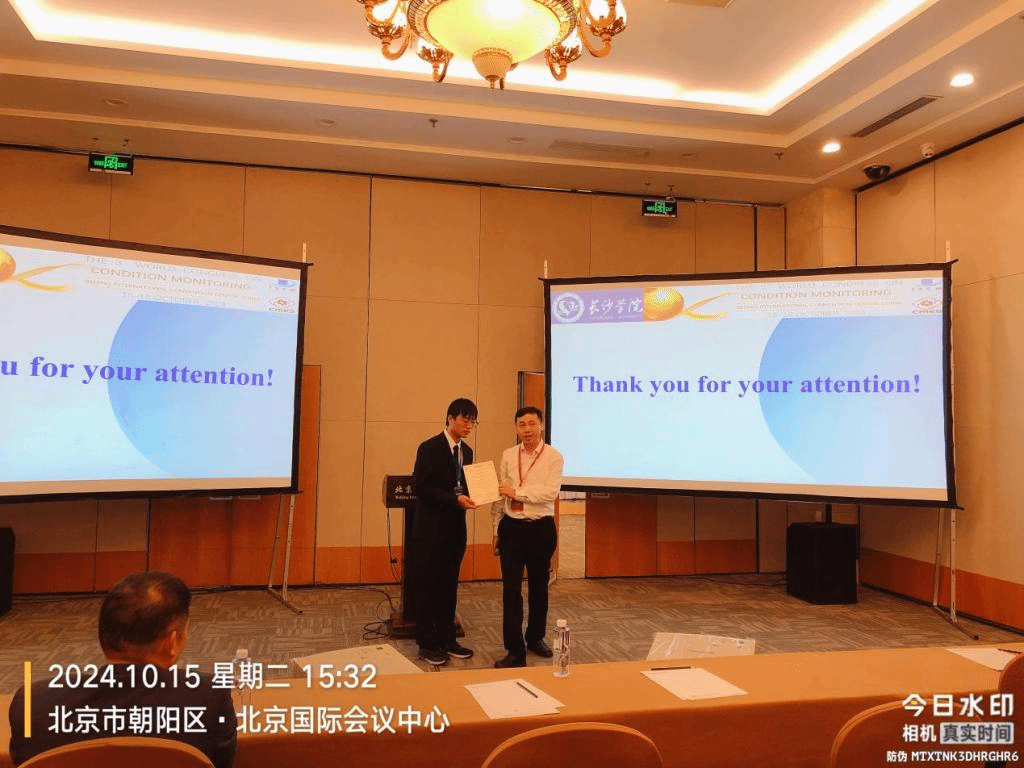 2024年10月15日到18日,第三届世界状态监测大会The 3rd World Congress on Condition Monitoring,(WCCM 2024)在北京国际会议中心召开。长沙学院机电工程学院2022级本科生李帆以第一作者提交论文并在分论坛进行论文汇报。