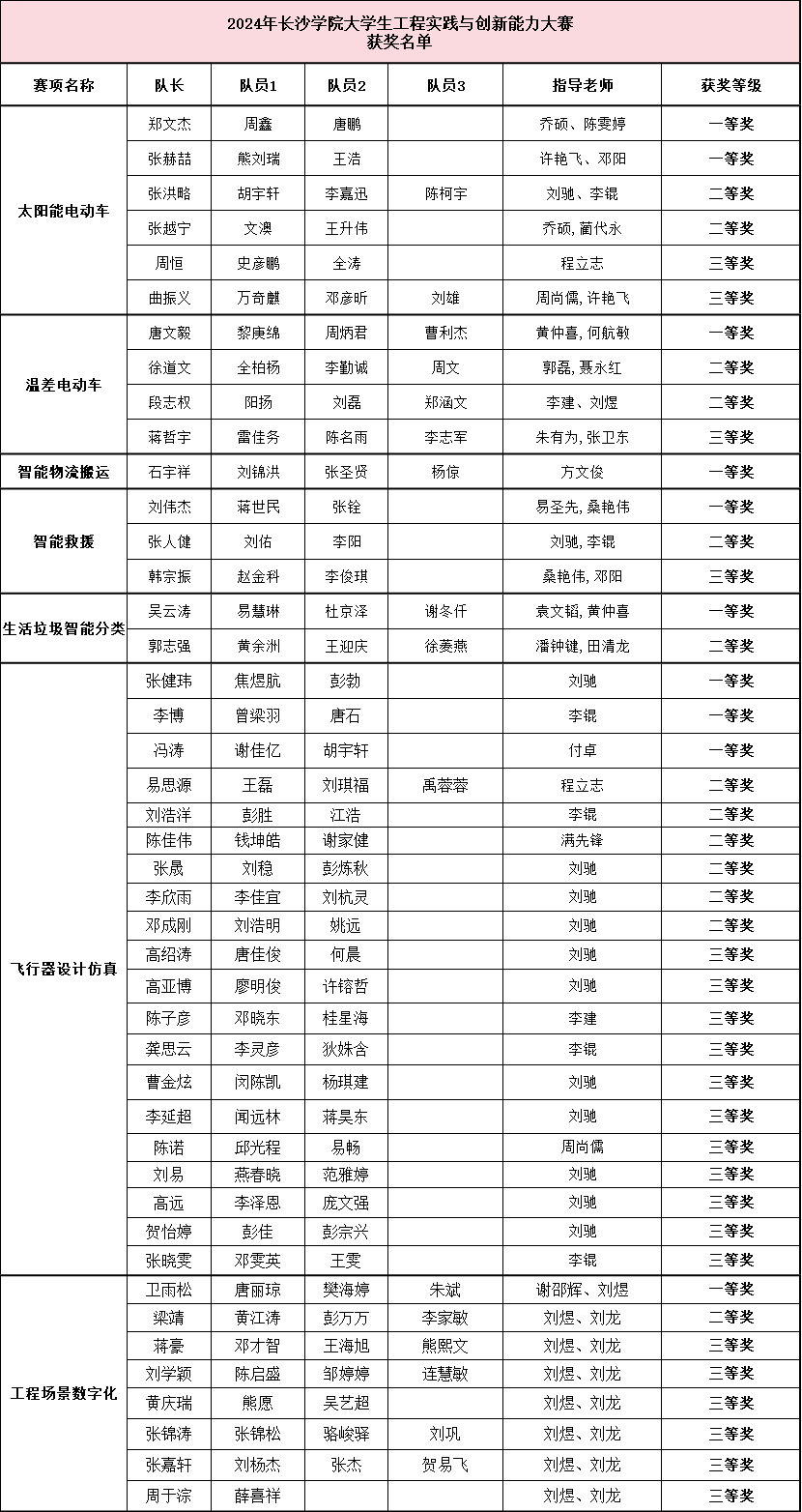 “2024年长沙学院大学生工程实践与创新能力大赛”获奖名单