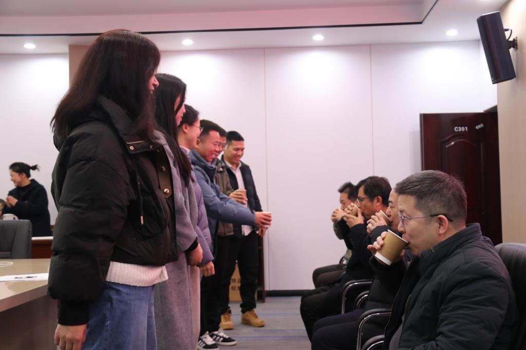 仪式第三项,新进青年教师依次发言。教师们表达了对学院和导师的感激之情,并郑重承诺将虚心学习、勤奋工作,努力提升自身的教学与科研能力。接着青年教师们双手奉上一杯清茶,向导师表达敬意与感恩。