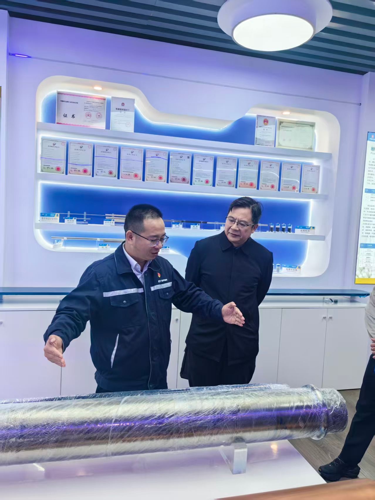 会谈结束后,在总经理吴建国的陪同下,张高峰一行参观了公司展厅和生产车间。