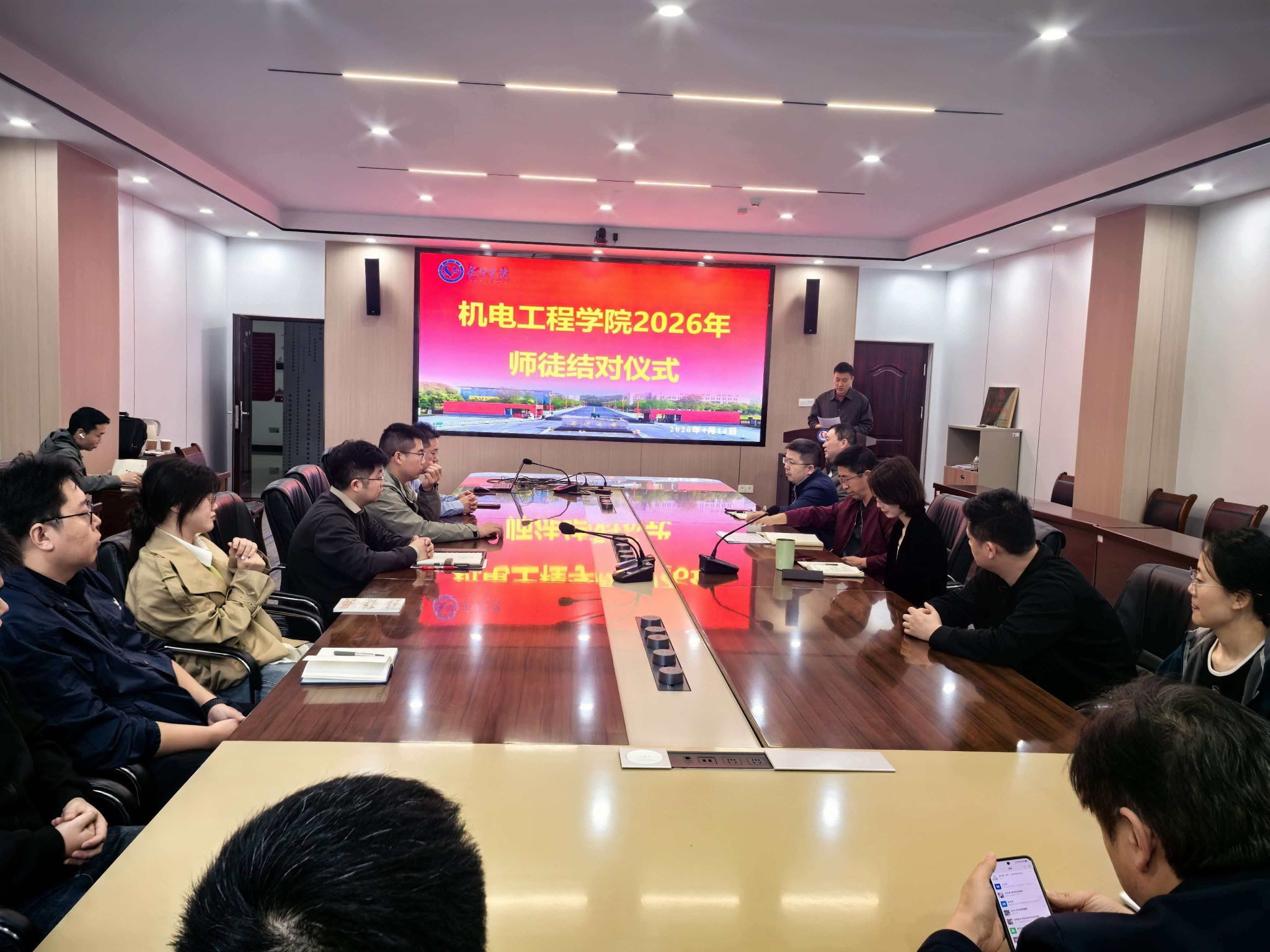为深化新时代教师队伍建设,充分发挥骨干教师的示范引领和“传、帮、带”作用,助力青年教师快速成长,4月14日,机电工程学院隆重举办2026年青年教师师徒结对仪式。学院班子成员、各系及实验室主任、科级干部共同见证了这一意义非凡的时刻。仪式由学院辅导员张天然主持。