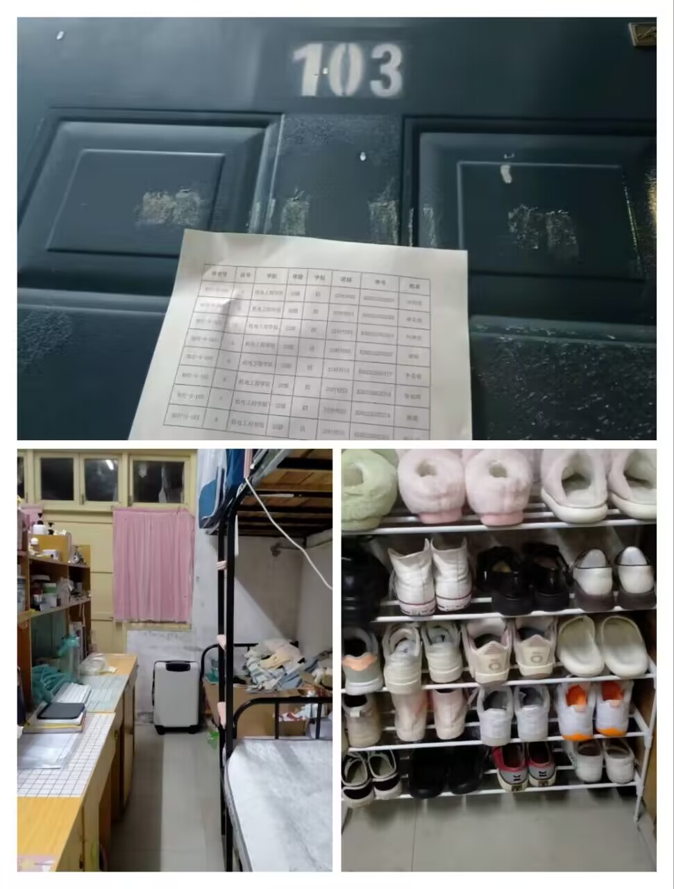 洪山10栋313宿舍(摆放不整齐,宿舍比较杂乱)
