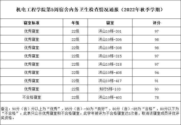 通报|2022年秋季学期机电学院10月份宿舍内务卫生检查结果通报