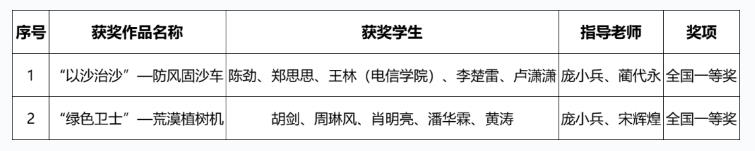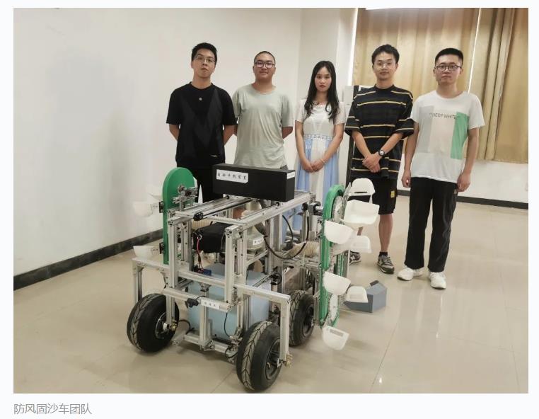 本届全国大学生机械创新设计大赛的主题为“自然·和谐”,该校获得本届大赛全国一等奖的两支团队作品分别为“以沙治沙”——防风固沙车与“绿色卫士”——荒漠植树机。