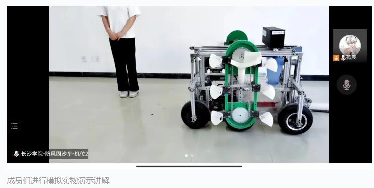 关于灵感来源和制作理念,两组都有话说。设计防风固沙车组的同学提到,当时刷抖音视频,看到现在铺沙仍需耗费大量人力,所以想设计一个市面上暂时没有的,能够解放人为劳动力的防风固沙车。