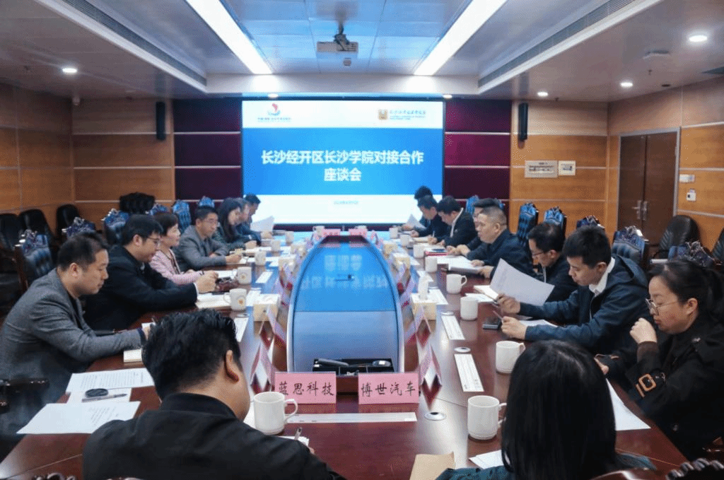 长沙经开区长沙学院对接合作座谈会现场。