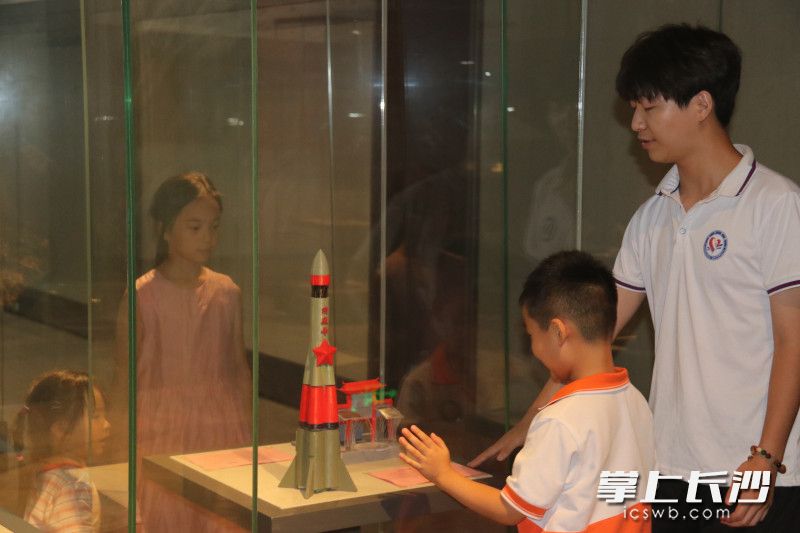 大学生志愿者为参观的孩子讲解3D打印及清廉文化。