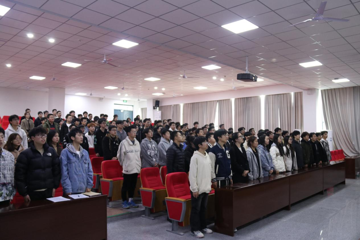 现场,金欢通过珍贵的历史画面和庄严的国歌把大家带入了那段波澜壮阔的岁月,告诉大家“中华人民共和国国歌《义勇军进行曲》,是一首跨时代的战歌,是唱响世界的中国最强音”。随后,通过生动还原在当时的历史背景下田汉的艰辛创作之路,让大家深刻感受到“身边是战火,心中是祖国”的崇高精神。课堂的最后,老师和同学们一起合唱《义勇军进行曲》,自信坚定、铿锵有力的歌声响遍了机电工程学院。同学们纷纷表示,通过这样的生动讲课,让大家重温了那段波澜壮阔的历史,积蓄了建设新时代的蓬勃力量。
