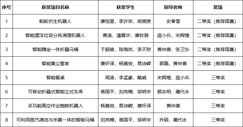 中国机器人及人工智能大赛是教育部A类竞赛,列入中国高等教育学会发布的《全国普通高等学校学科竞赛排行榜》,其涉及计算机、电子、机械、信息、人工智能等方面,是多学科知识的交叉融合的大赛,我院首次参加此项大赛,也是代表我校首次参加此项大赛,4项作品推荐国赛实属不易。