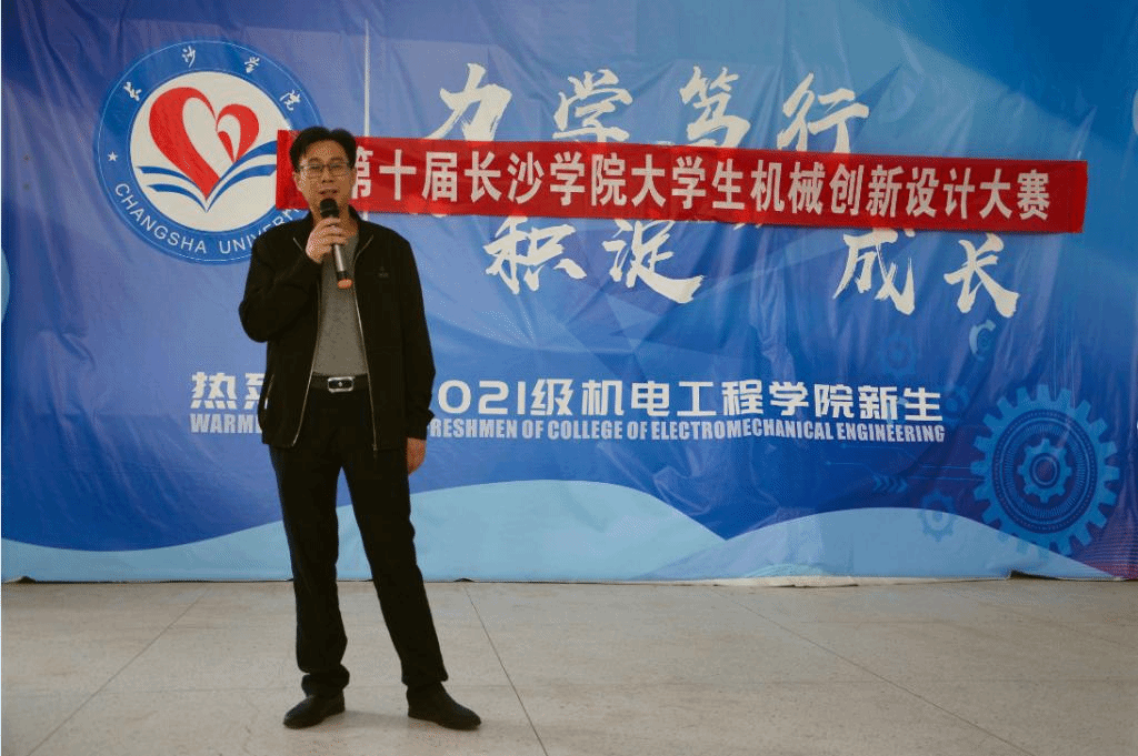 2022年4月19日下午2:00,“第十届全国大学生机械创新设计大赛长沙学院选拔赛”(以下简称比赛)在机电工程学院长智楼成功举行。此次比赛以“自然·和谐”为主题,包括“仿生机械”和“生态修复机械”两个方面的内容,共有26件参赛作品。长沙学院教务处副处长谭义红、机电工程学院党总支书记张昊、副院长朱宗铭等领导和老师出席比赛现场。